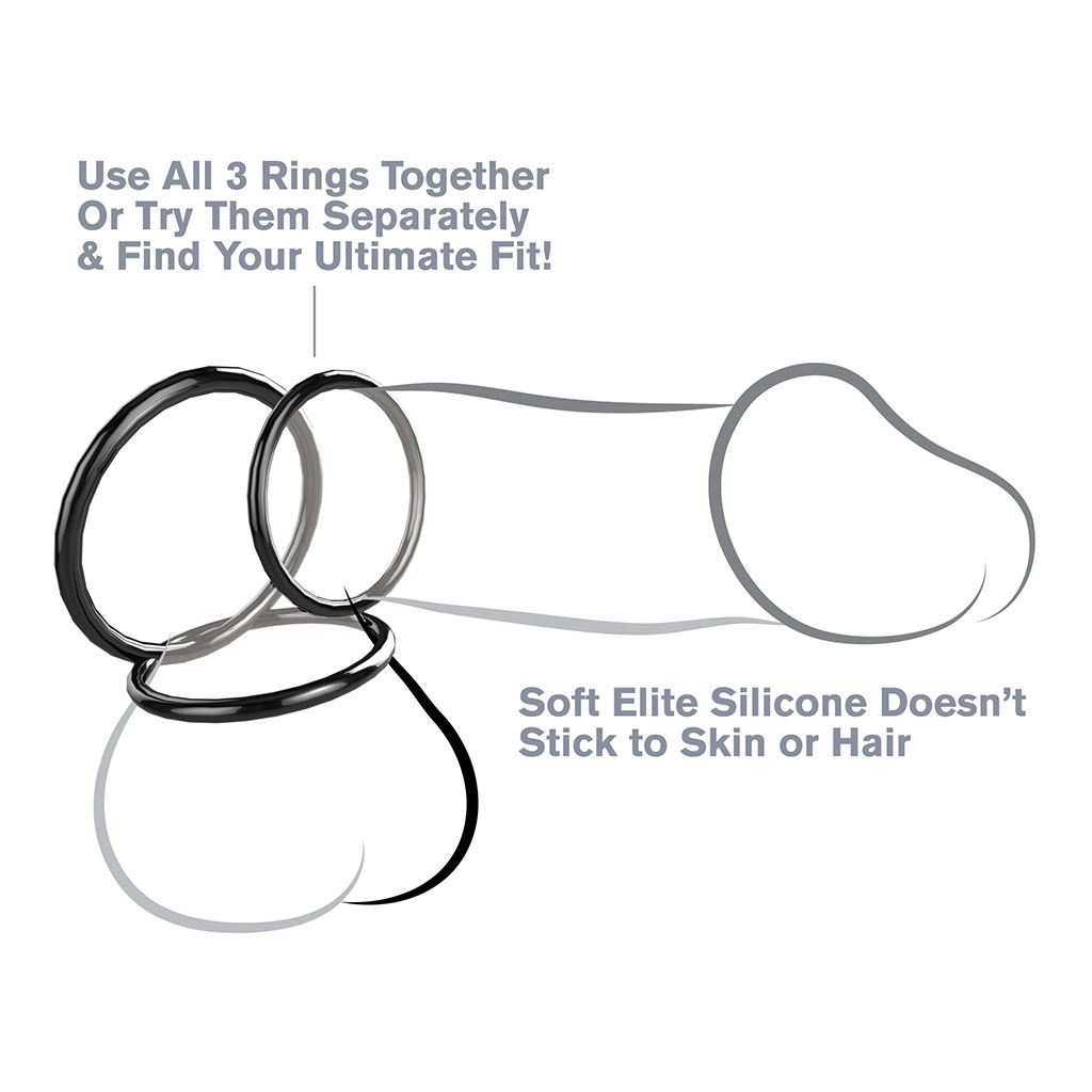Hármas erő a végtelen élvezetért a Pipedream Silicone 3-ring Stamina péniszgyűrű szettjével!