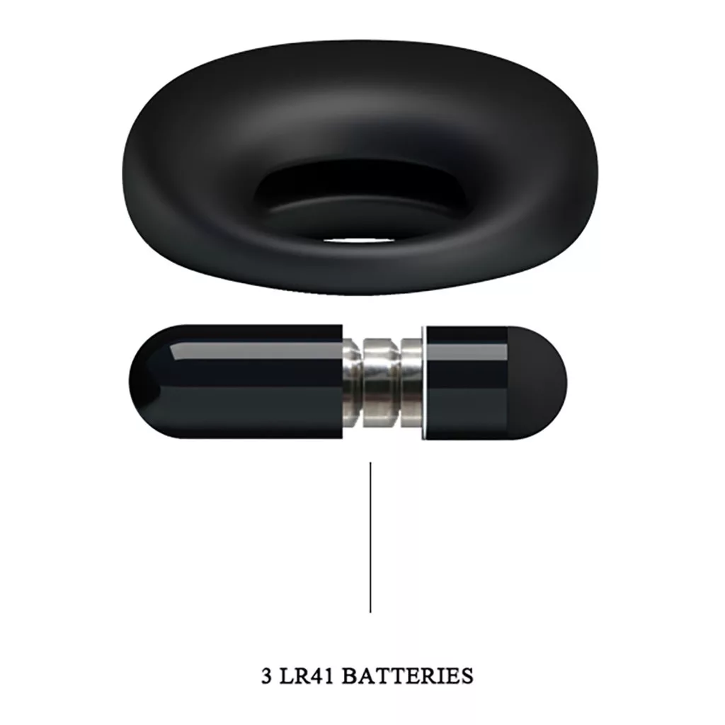A gyűrű puha, rugalmas szilikonból készült, ami kényelmesen idomul a testhez. A beépített minivibrátor erőteljes rezgésekkel fokozza az élményt, és ha szeretnéd, egyetlen gombnyomással ki- vagy bekapcsolhatod. A készülék 3 db LR41 gombelemmel működik, melyeket a csomag tartalmaz, így azonnal használatba veheted.