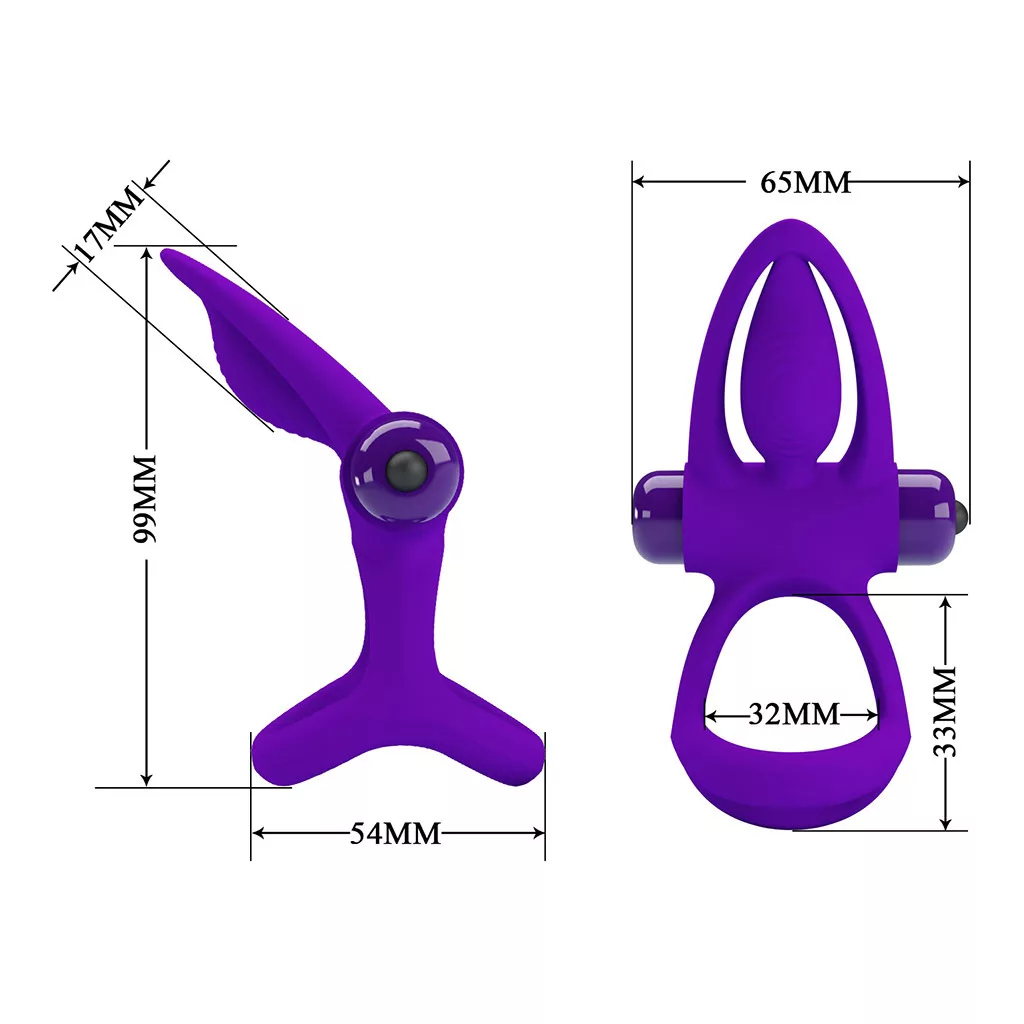 Pretty Love vibrátoros pénisz- és heregyűrű, lila, szilikon, csiklóizgatós