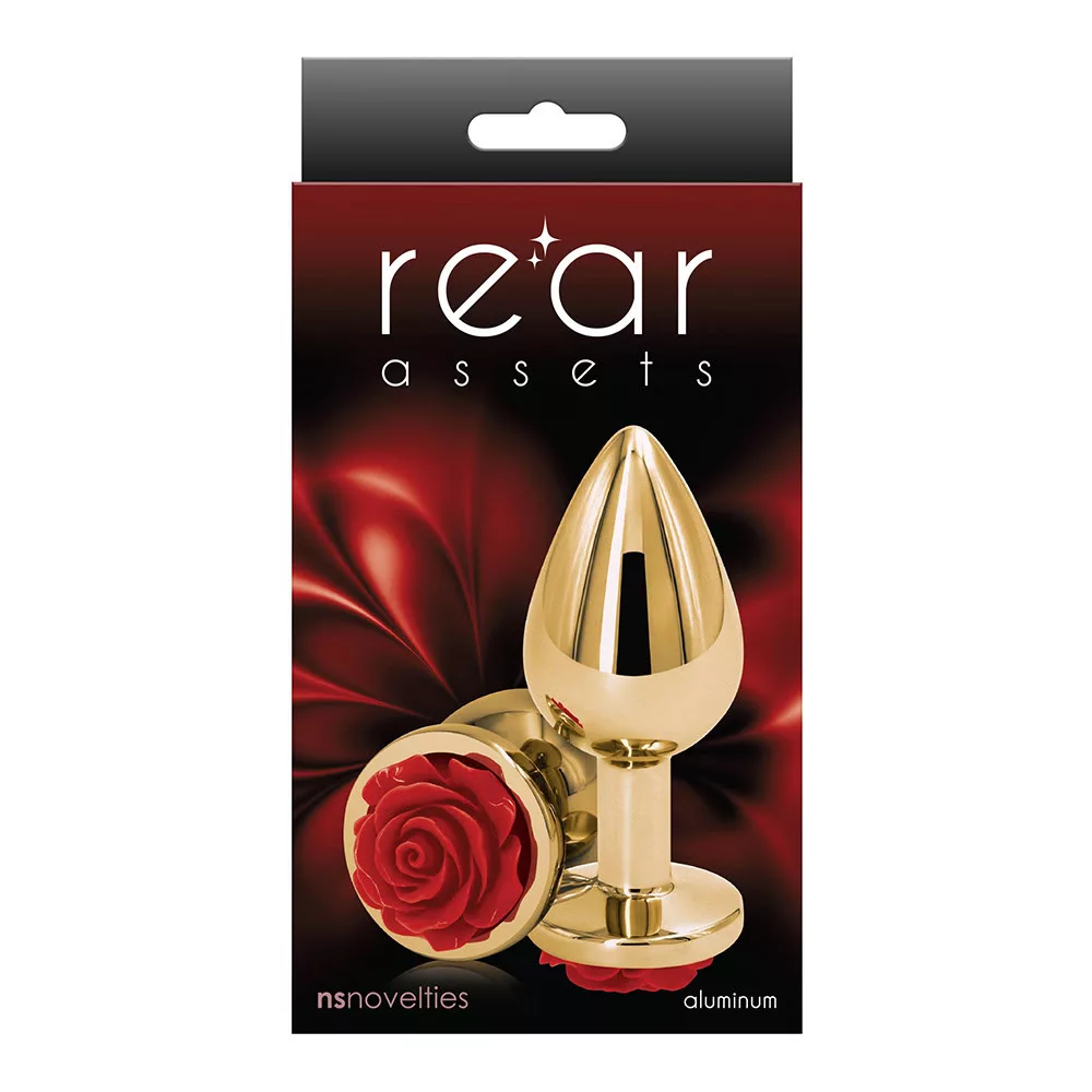 A Rear Assets anál plug arany színben egy igazán feltűnő darab, amely azonnal magára vonja a figyelmet. A tükörfényes felület elegáns megjelenést ad, amit a piros rózsával díszített talp tesz igazán karakteressé. Ez a fenékdugó nemcsak praktikus, hanem vizuálisan is különleges kiegészítő.