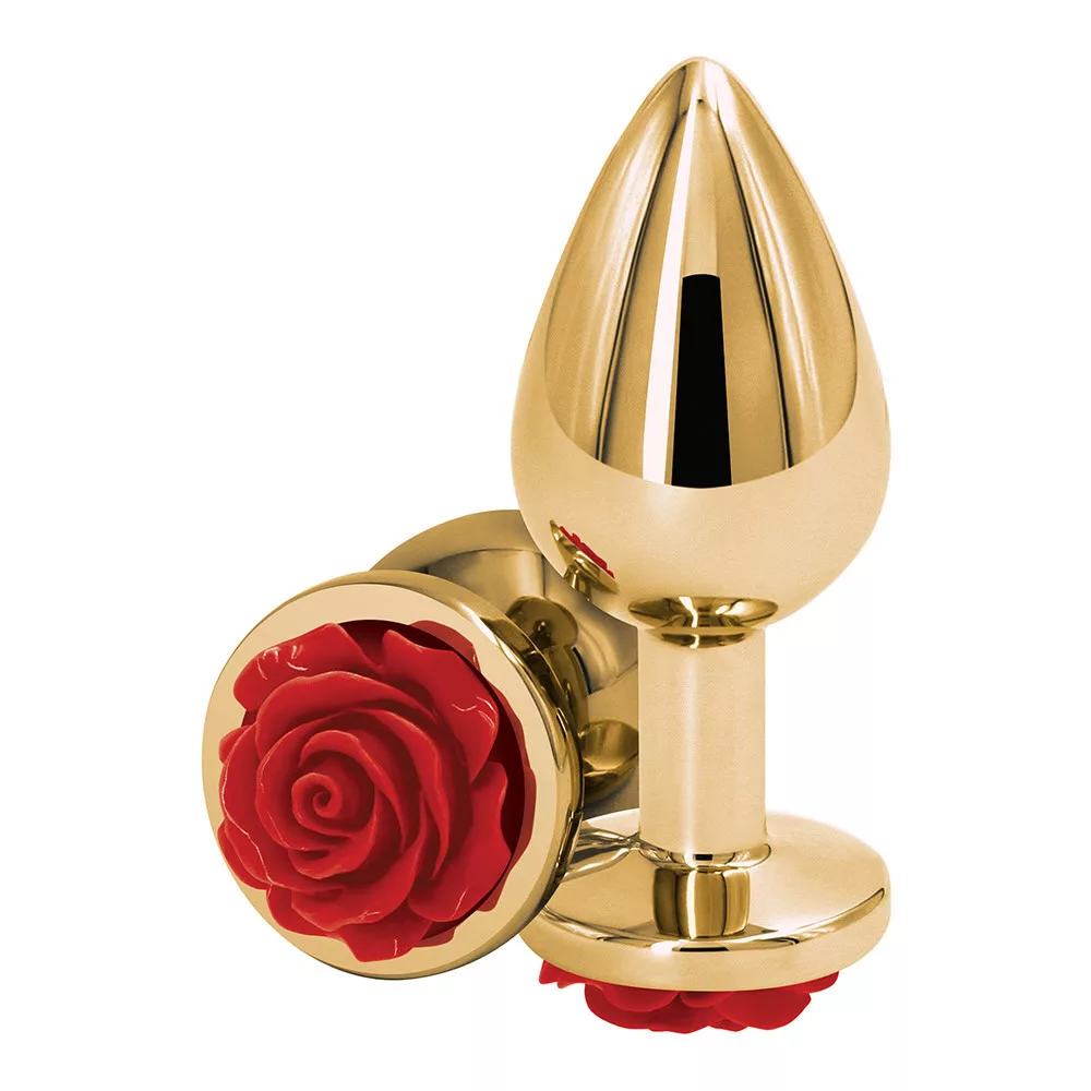 Rear Assets fém anál plug, arany, piros rózsás talp (közepes)