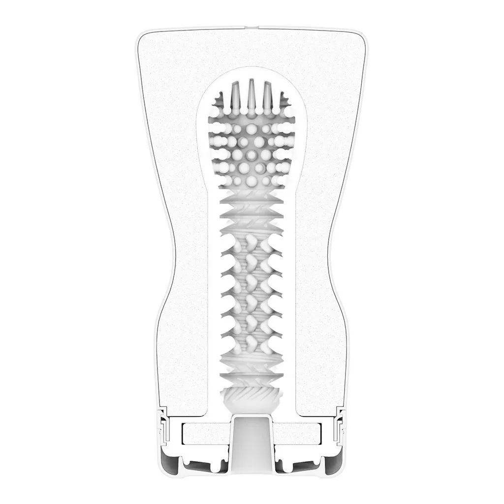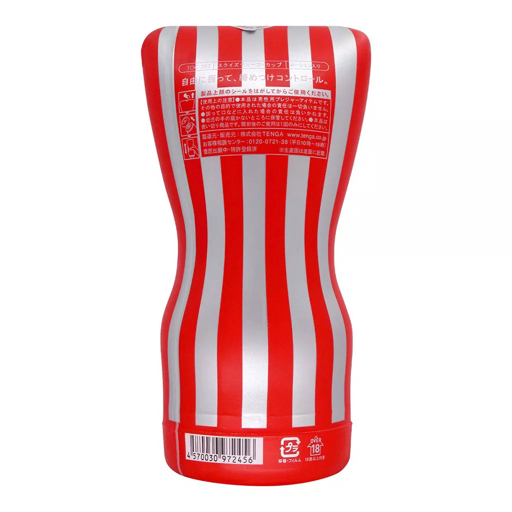 A sorozat többféle érzékenységi fokozatot kínál, a Squeeze Tube Cup ebben a „Standard” változat, vagyis a klasszikus, kiegyensúlyozott stimulációt biztosító verzió. Ami igazán egyedivé teszi, az a rugalmas tok: ennek a kialakítása lehetővé teszi, hogy az ujjaiddal pontosan ott és úgy szabályozd a nyomást, ahol az neked jól esik. Finomabb vagy erőteljesebb masszírozás? Rajtad múlik.
